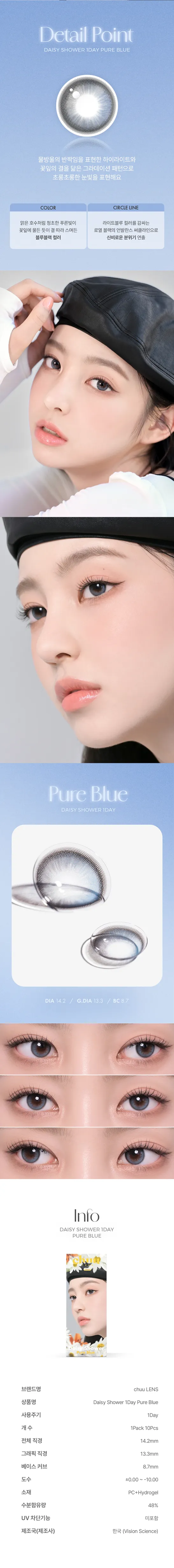 Chuu Daisy Shower 1Day Pure 藍色 彩色隱形眼鏡 (日拋/10片) 共有 3 則評價