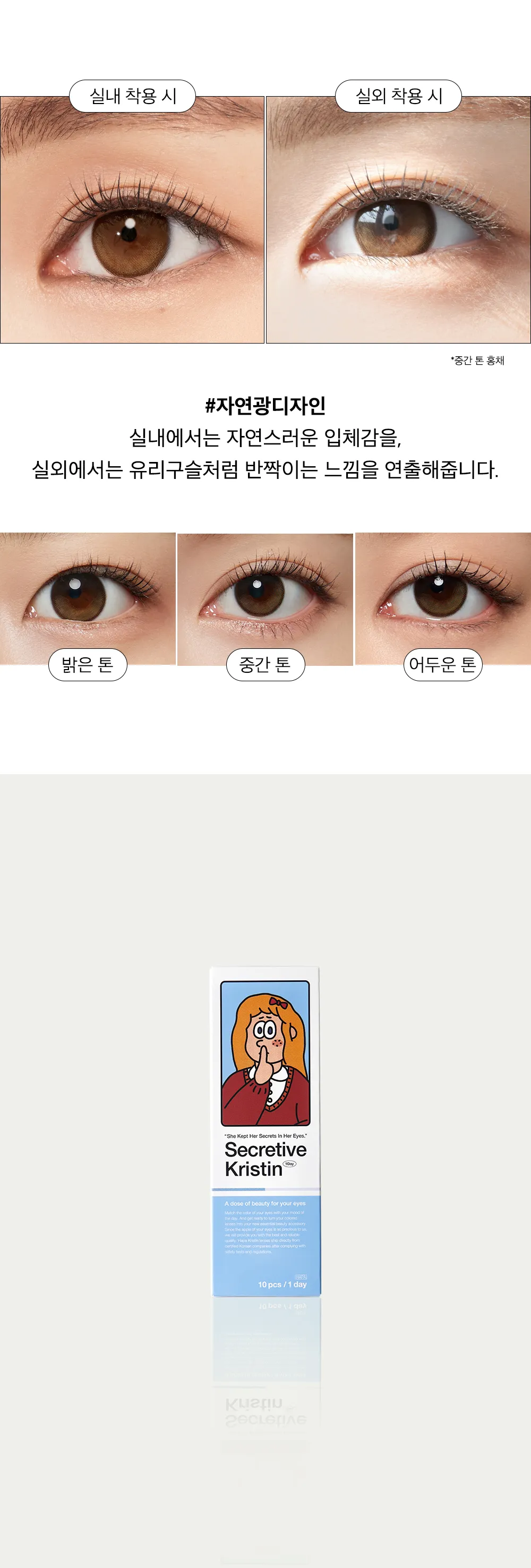 3色, 彩色隱形眼鏡, 深色邊框, 混血眼睛, 瞳孔放大片, 自然深色眼睛, 自然眼睛大小, 閃光淚眼
